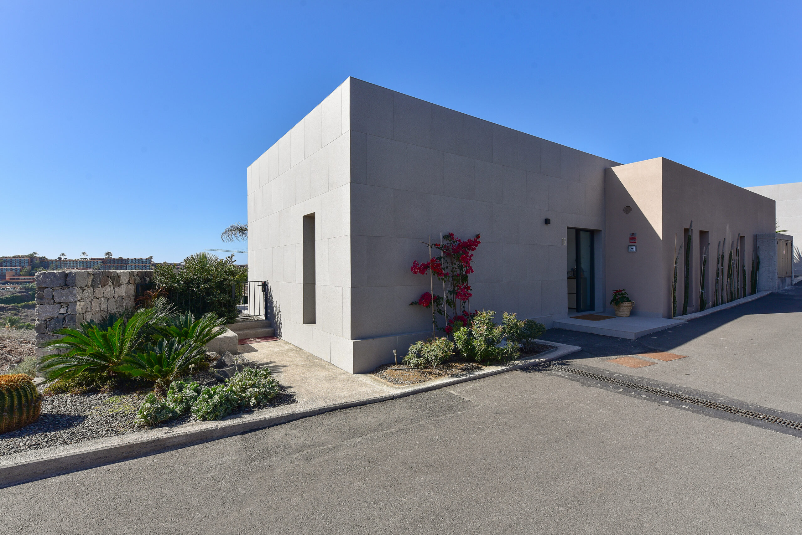 Villa 15 liegt in der privaten Urbanisation Salobre Golf & Resort (San Bartolomé de Tirajana, Gran Canaria). Das Ensemble Las Yucas 1 umfasst 17 sehr helle Villen mit Südwest-Ausrichtung – mit Blick auf den Atlantik, die Dünen von Maspalomas und den Golfplatz.