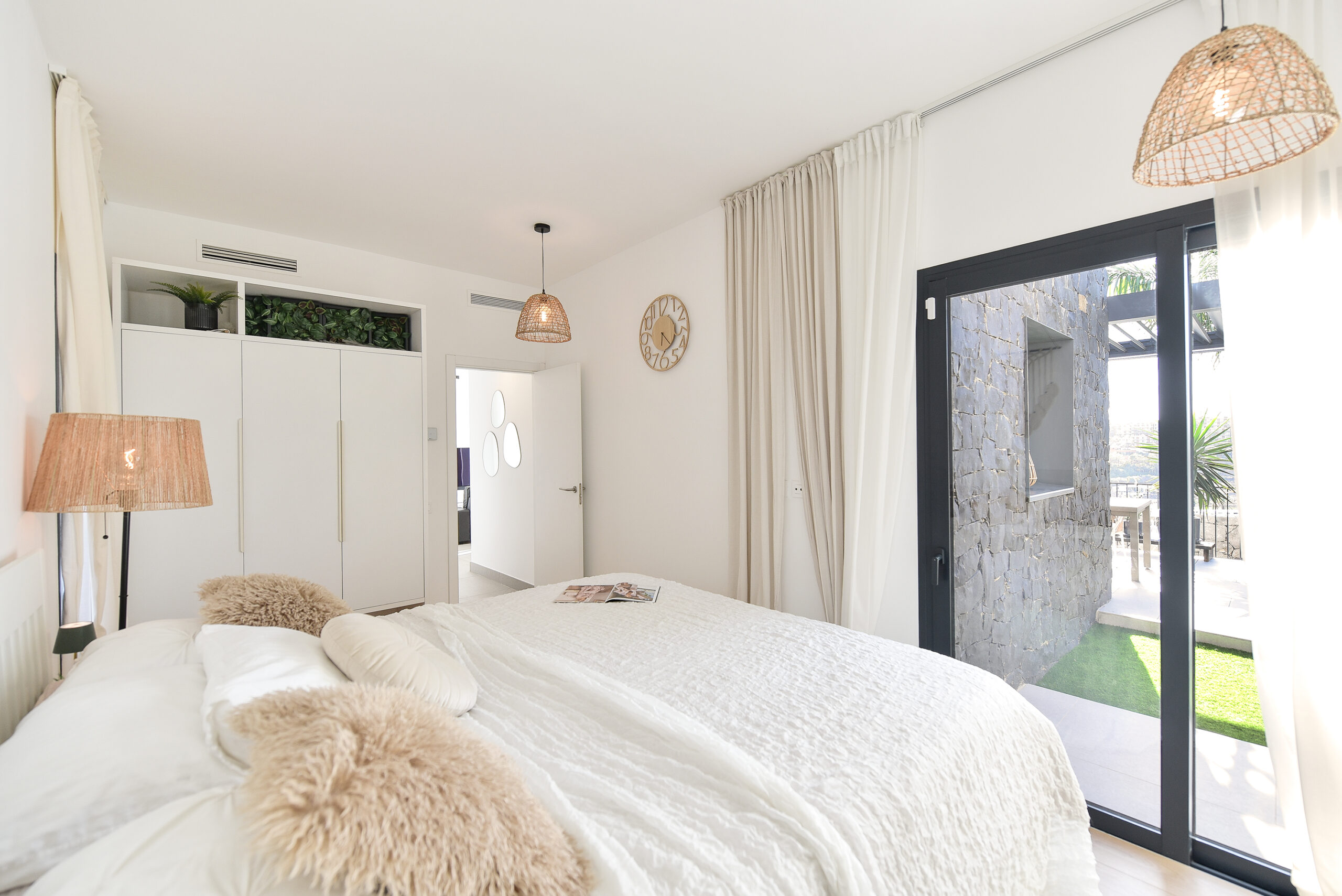 Die Master-Suite ist der private Rückzugsort: Schlafzimmer, Stauraum, Blick nach draußen – plus eigenes Bad.